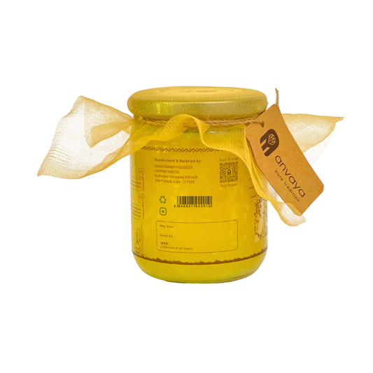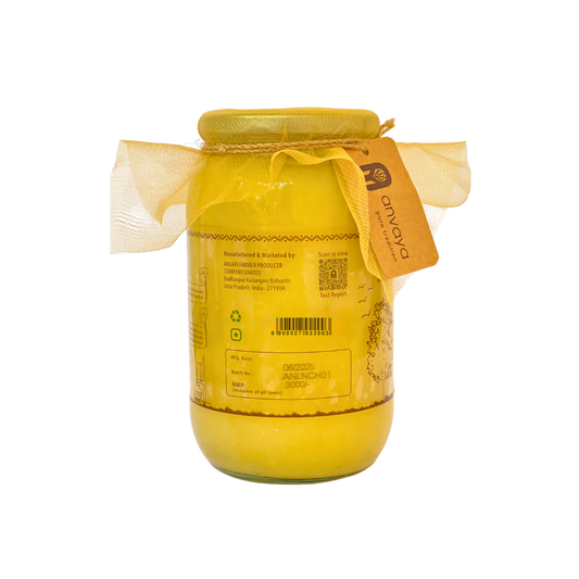 Anvaya Pure's A2 Ghee is made from the milk of desi Sahiwal cows using the traditional Bilona method. Unlike regular ghee, A2 Ghee contains only A2 beta-casein protein, making it easier to digest, highly nutritious, and beneficial for overall health.