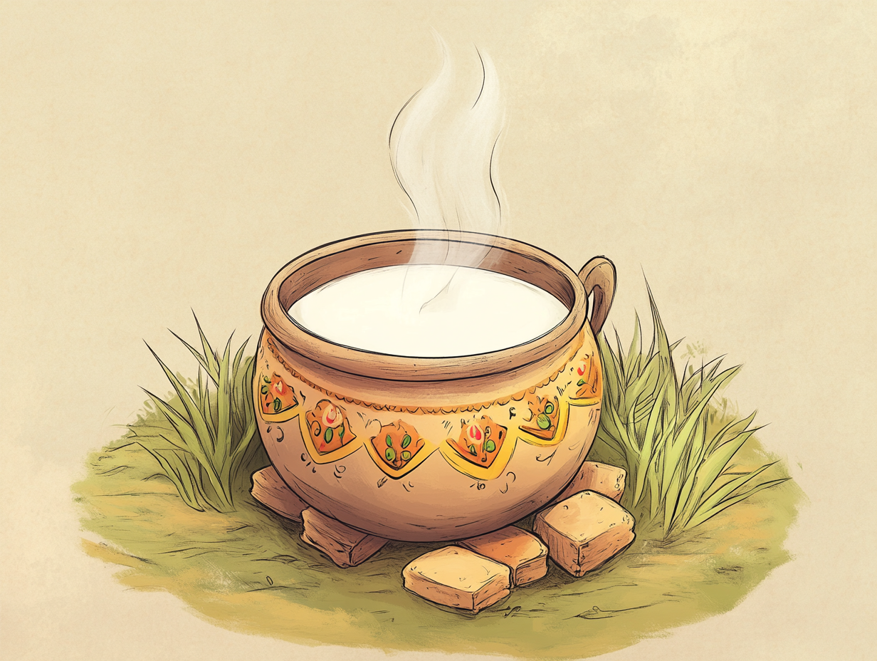 The fresh milk is slow-boiled on a low flame, just like grandma used to do! This enhances its nutritional value and gives it a rich, reddish tint, unlocking its natural goodness. ✨